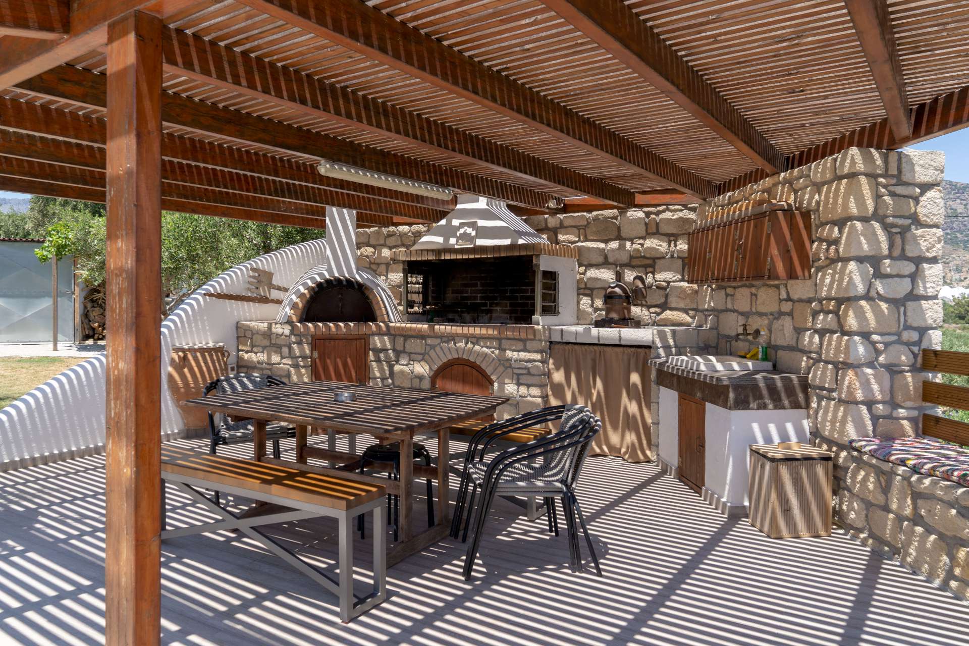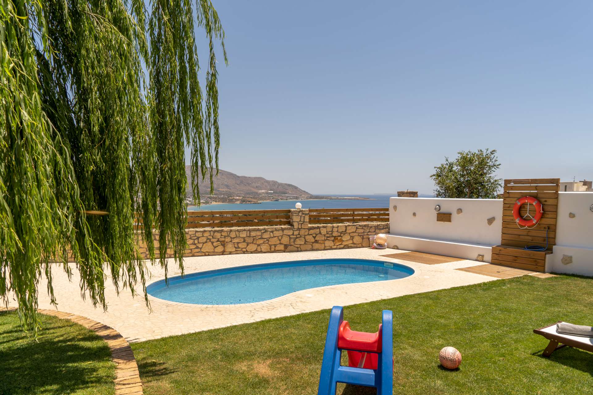 Τέλος στον εξωτερικό χώρο της Villas Dolce Evita θα βρείτε τον ιδιωτικό χώρο στάθμευσης για τις ανάγκες σας, το μπάρμπεκιου και δεν θα μπορούσαμε να παραλείψουμε την πισίνα μας όπου μπορείτε να νιώσετε στιγμές απόλυτης χαλάρωσης και ευεξίας ενώ κάνετε ηλιοθεραπεία έχοντας τη θέα του Μακρύ Γιαλού και του Κρητικού Πελάγους.